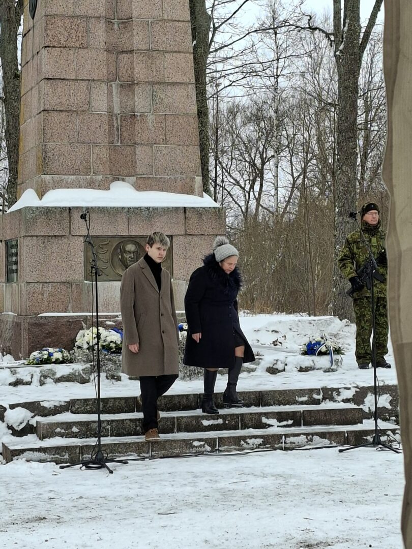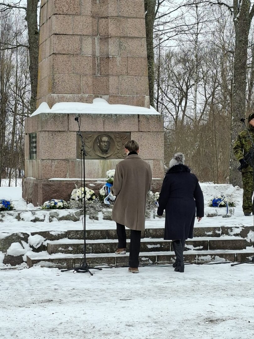 Eesti Vabariigi 108. aastapäeva pidulik tähistamine 23. veebruaril esimese presidendi, Konstantin Pätsi ausamba juures. Häädemeeste koolipere poolt asetasid lilled ausamba jalamile austuse ja tänutunde märgiks direktor Marika Merirand ja õpilasesinduse president Marcus Maddison.