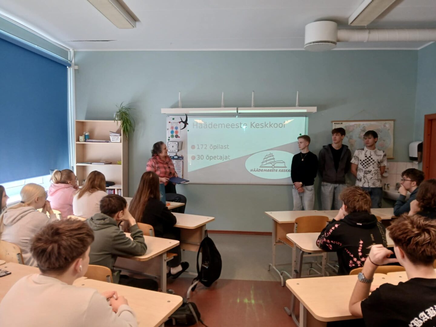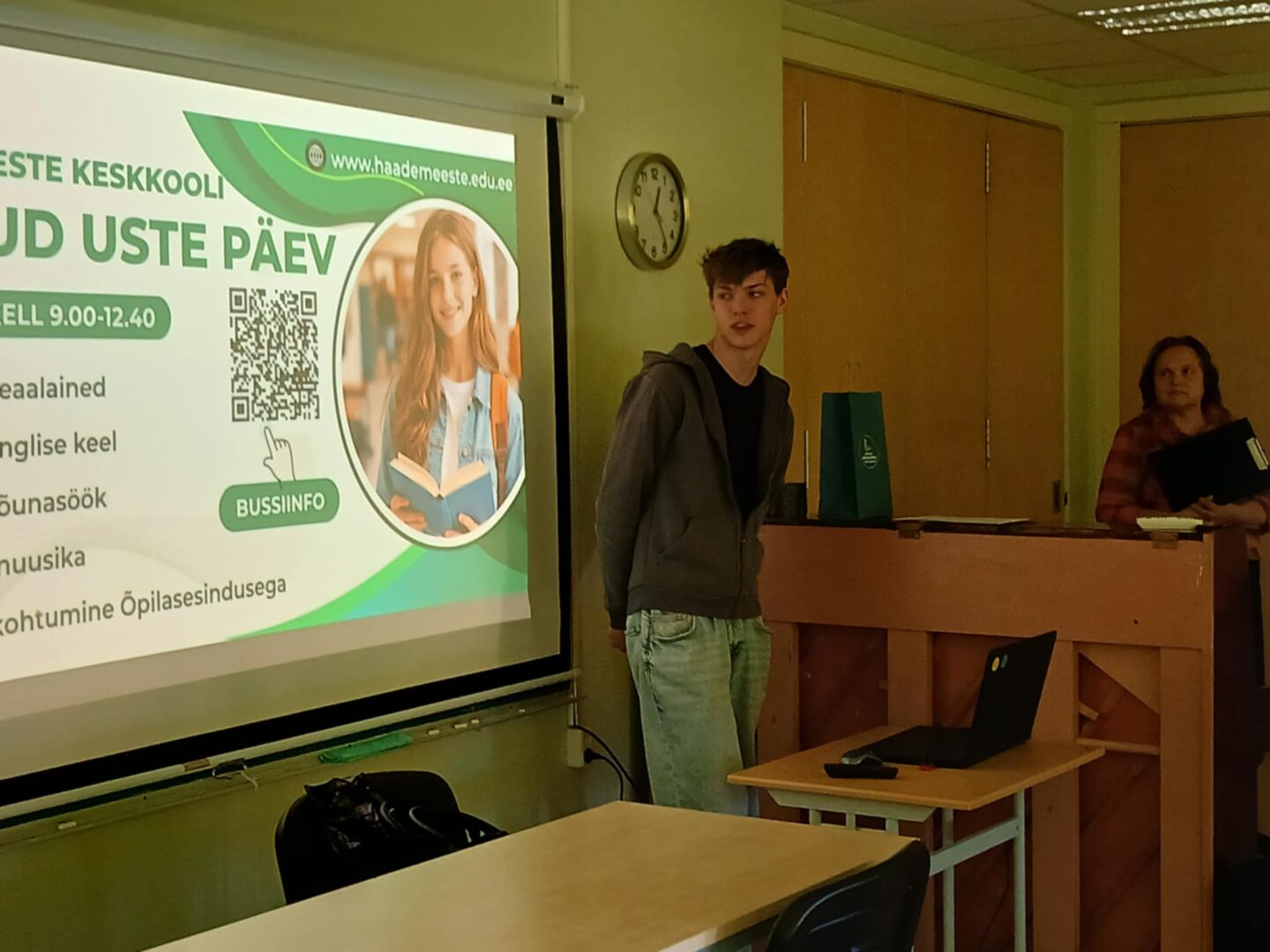 Alustasime täna oma koolipäeva koos direktor Marika ning 10. klassi õpilase Andro ja õpilasesinduse presidendi Marcuse ja õpilasesinduse liikme Gleniga Uulu Põhikoolis ja pealelõunal kohtusime ka Metsapoole Põhikooli õpilastega, kus saime tulevastele gümnasistidele lähemalt tutvustada õppimisvõimalusi Häädemeeste keskkoolis